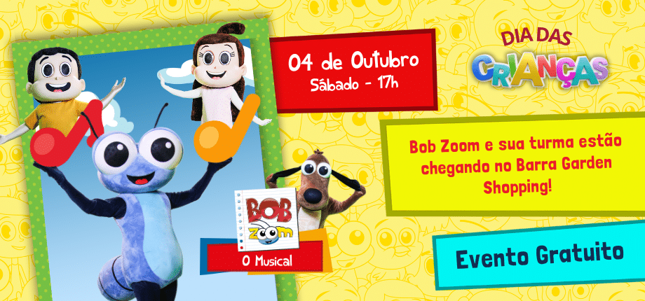 04/10/2025 a 04/10/2025Show do Bob Zoom em “O Musical” – Barra Garden Shopping – As 17hs